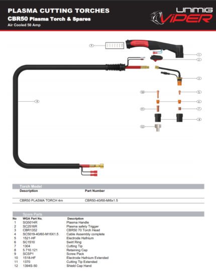 • UNIMIG CBR150 Plasma Extended Electrode – 1 each