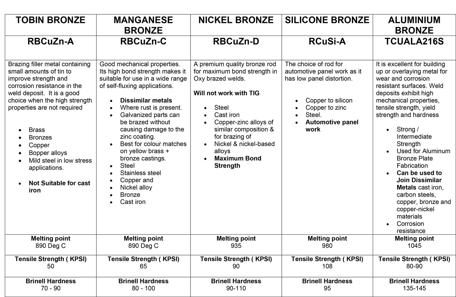• Versatile compatibility with brass, bronzes, copper, copper alloys, and mild steel