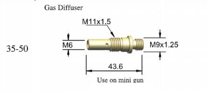 40x TWECO 35-50 Mini-MIG Style Gas Diffuser, compatible with Magnum 100L. Made of high-hardness, high-conductivity copper alloy, ISO9001:2008 certified for durability and performance.