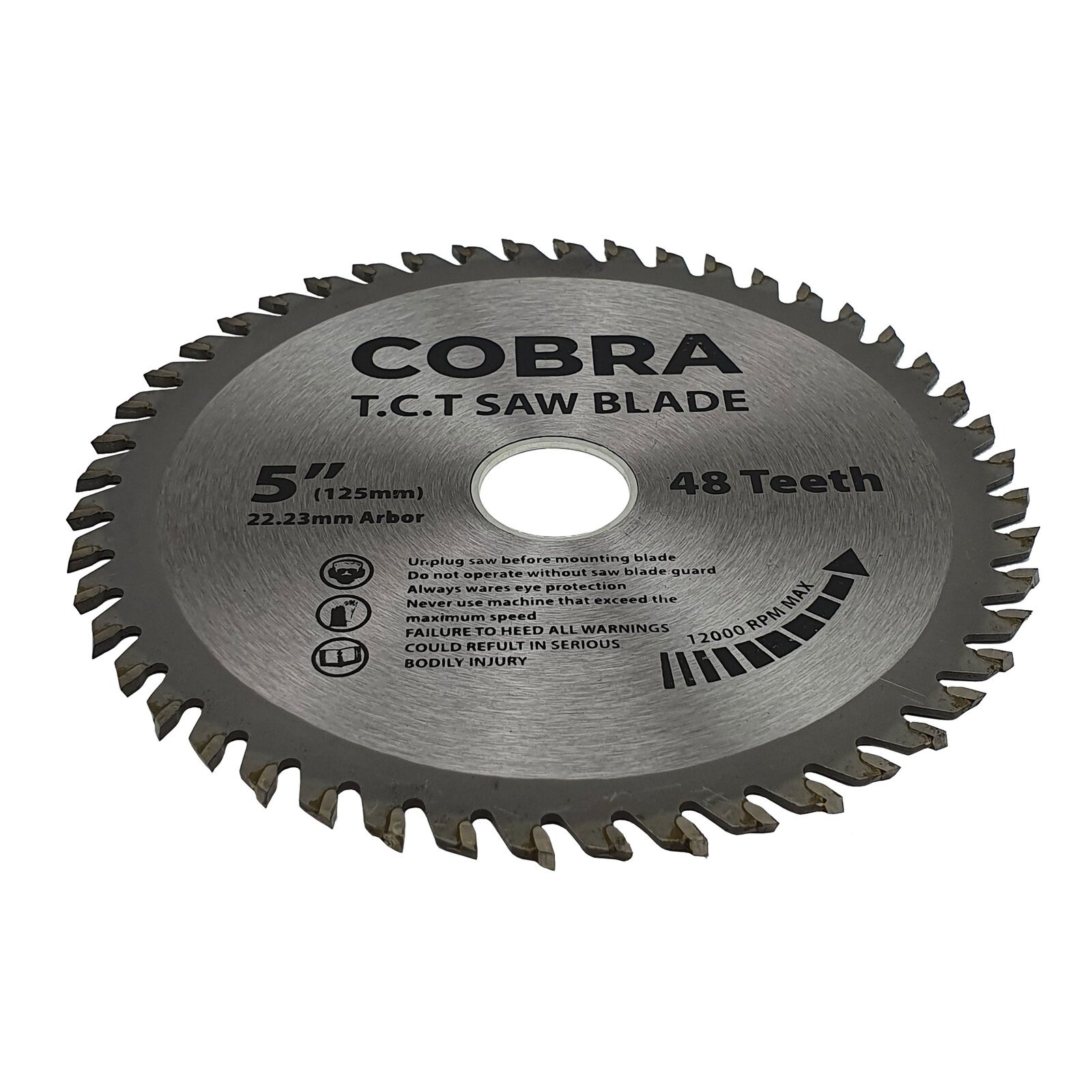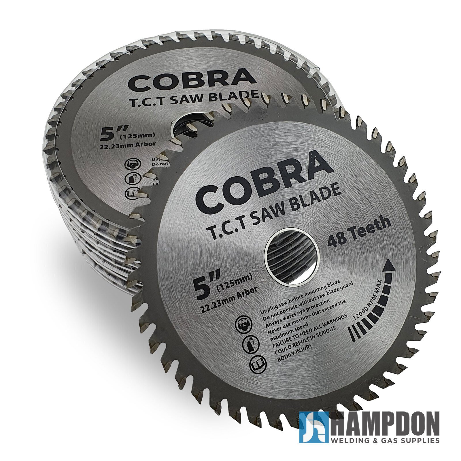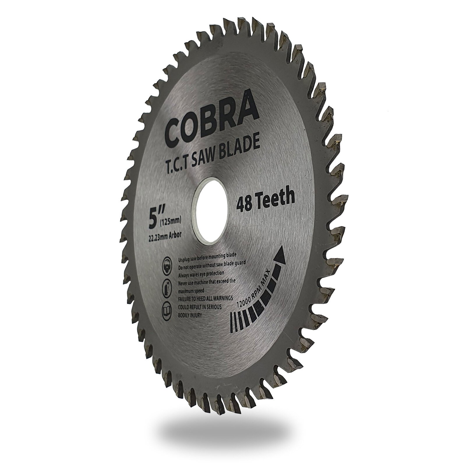 High-quality 5″ circular saw blades by COBRA, ideal for precise aluminium cutting. Made of trade quality alloy steel with 48 ultra-hard Tungsten Carbide teeth, designed for rigorous commercial use. 10-pack with removable inner diameter spacer.