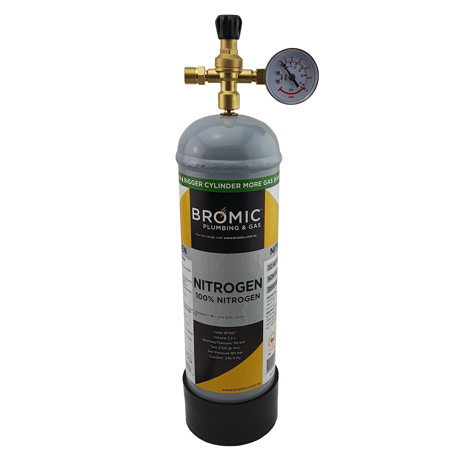 | Disposable Nitrogen Bottle | 2.2L 100% food-grade cylinder (PN:1811527) | 110 Bar pressure, 0.24m3 gas capacity, 10mm thread |